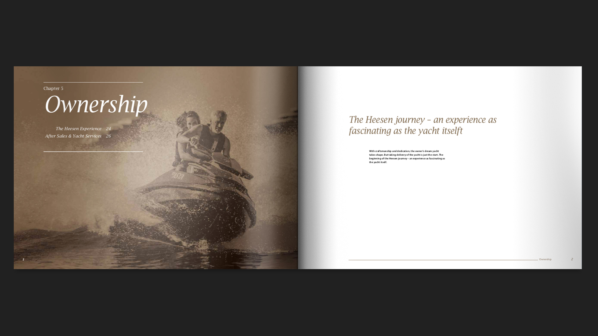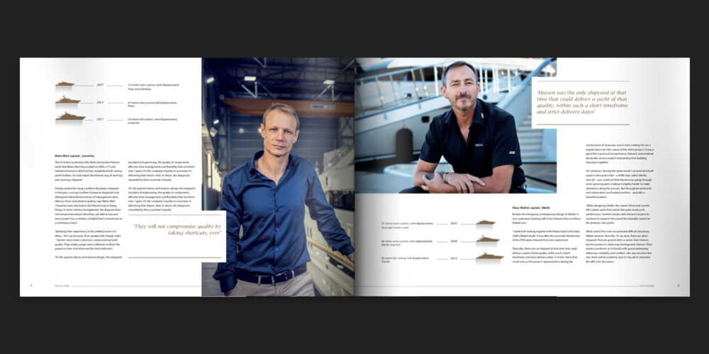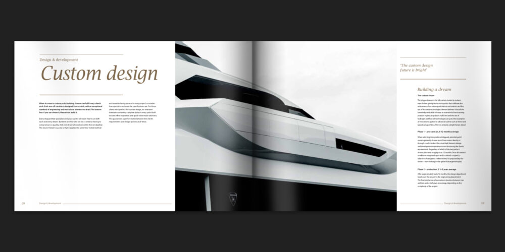 For Heesen, we created a company book that tells the full story of the shipyard — from its visionary beginnings to its place as one of the most respected names in luxury yachting. The book explores the brand’s heritage, its uncompromising craftsmanship, and the bold design philosophy that has shaped its iconic fleet.